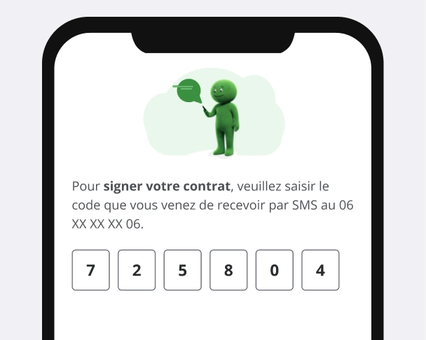 Renseignez vos informations, téléchargez vos justificatifs et signez via un code reçu par sms.